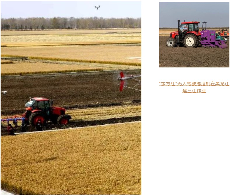 在黑龍江建三江七星農(nóng)場,“東方紅”LF2204無人駕駛拖拉機、LF1104無人駕駛拖拉機順利完成規(guī)模面積無人駕駛玉米播種作業(yè)和水田耕整地作業(yè);